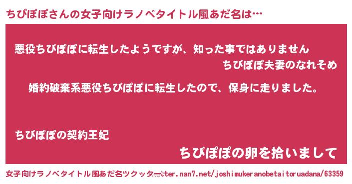 | 男性向けラノベタイトル風あだ名 | 『チビポポスレイヤー』 |