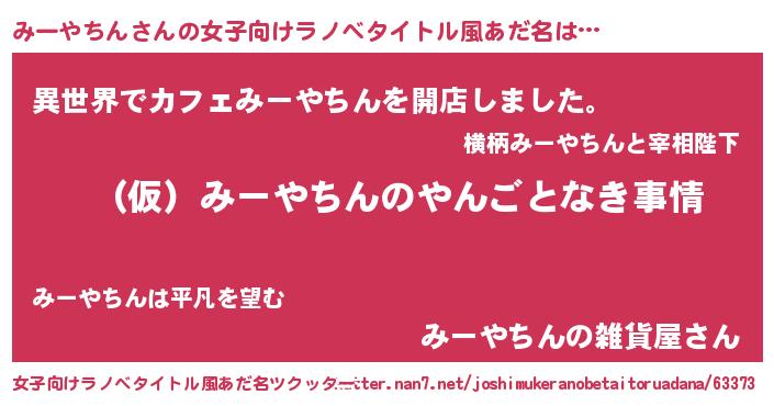 | 男性向けラノベタイトル風あだ名 | 『みーやちんの憂鬱』 |