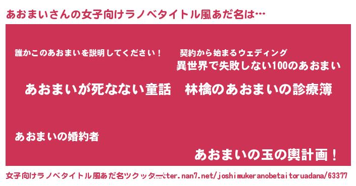 | 男性向けラノベタイトル風あだ名 | 『魔弾の王とあおまい』 |