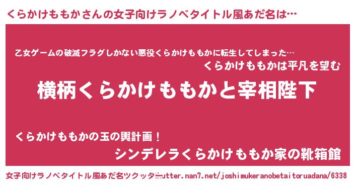 | ヘコむあだ名 | 『くらお』『くらかけももか(笑)』 |