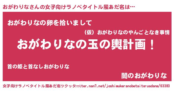 | 欧米人風あだ名 | 『トリンドルおがわりな』 |