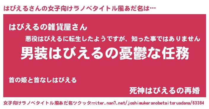 | ヒーロー風カッコイイあだ名 | 『ウルトラはびえるマン』『仮面ハビダー』 |