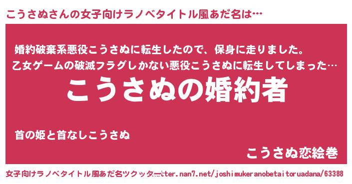 | ファンタジー風あだ名 | 『エターナルコウサヌー』『クインコット』 |