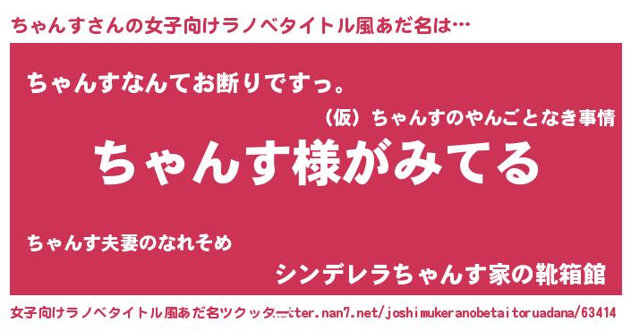 | ヒーロー風カッコイイあだ名 | 『炎刃騎士チャ』『超時空戦士チャンス』 |