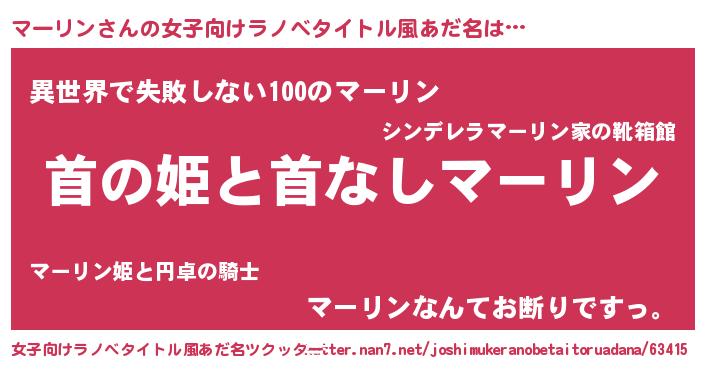 | ヒーロー風カッコイイあだ名 | 『ネオマーリン』『超時空戦士マーリン』 |
