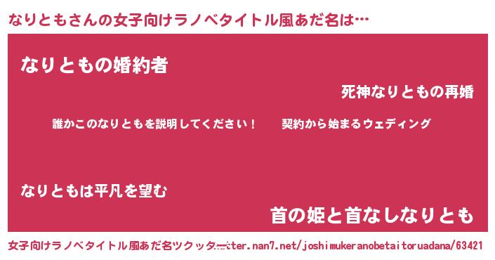 | 男性向けラノベタイトル風あだ名 | 『ナリトモアートオンライン』 |