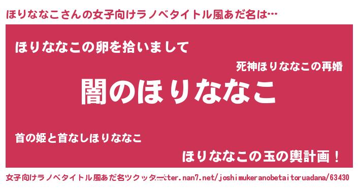 | 男性向けラノベタイトル風あだ名 | 『Re:ほりななこから始める異世界生活』 |