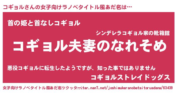 | ヘコむあだ名 | 『コギにー』『コギョル(小並感)』 |