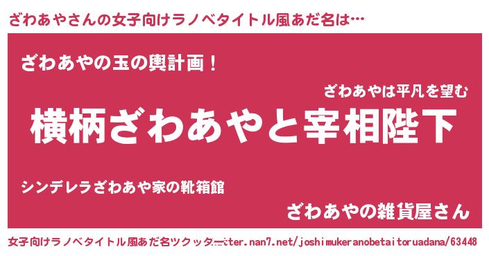 | 胡散臭い通販商品みたいなあだ名 | 『運命の人と巡り会える高級そうな絵画…その名も「ざわあや」』 |