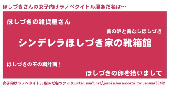 | 男性向けラノベタイトル風あだ名 | 『冴えないほしづきの育てかた』 |