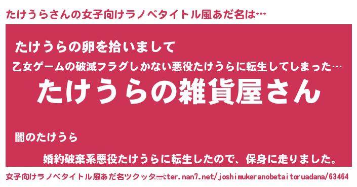 | 意味不明あだ名 | 『たけうらフォーエバー』『自称たけうら』 |