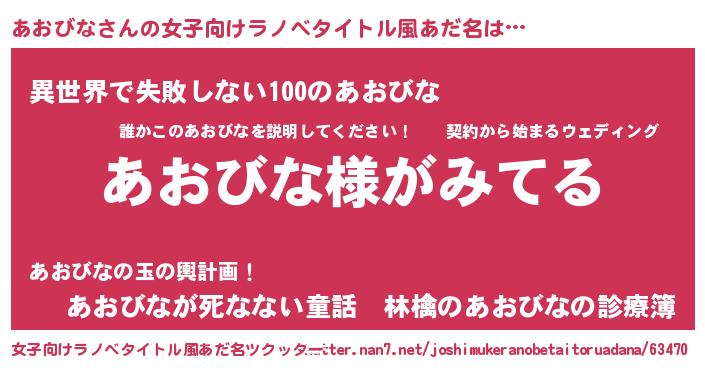 | 男性向けラノベタイトル風あだ名 | 『あおびなの嫁は女の子じゃないと思った?』 |