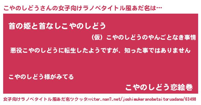 | 男性向けラノベタイトル風あだ名 | 『この素晴らしい世界にこやのしどうを!』 |