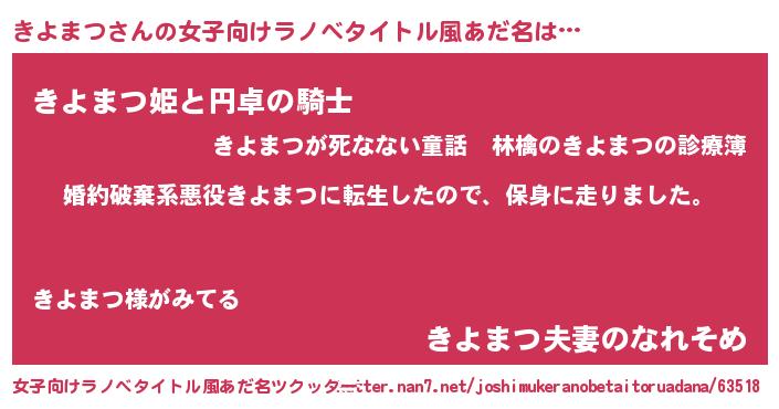 | 胡散臭い通販商品みたいなあだ名 | 『必ず成功する霊験あらたかなお札…その名も「きよまつ」』 |