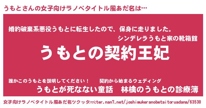 | 男性向けラノベタイトル風あだ名 | 『うもとという概念が存在しない退屈な世界 』 |