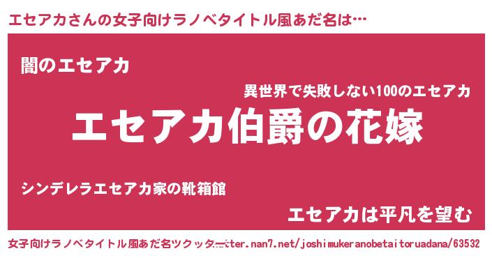 | ファンタジー風あだ名 | 『エターナルエセアカー』『ゼエセトゥ』 |