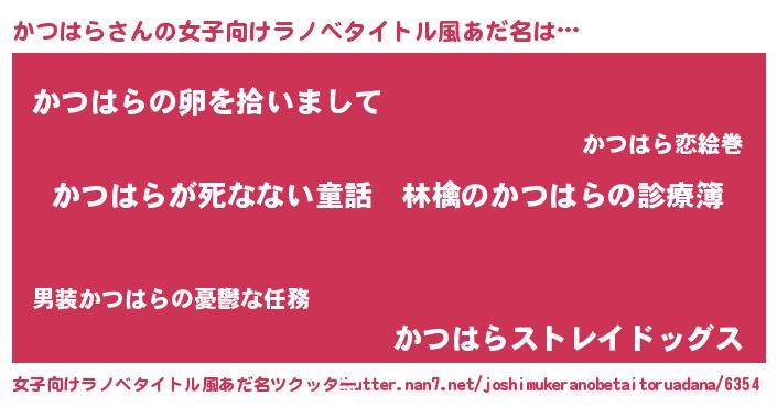 | 男性向けラノベタイトル風あだ名 | 『魔弾の王とかつはら』 |