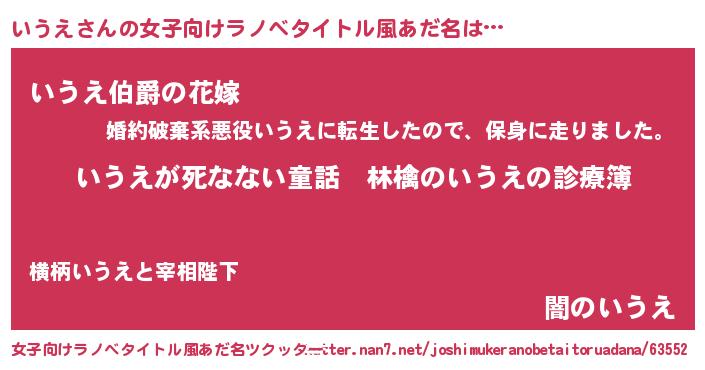 | 意味不明あだ名 | 『住所不定無職いうえ(79歳)』『自称いうえ』 |