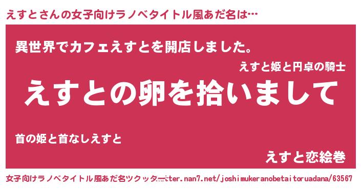 | 男性向けラノベタイトル風あだ名 | 『えすとの嫁は女の子じゃないと思った?』 |