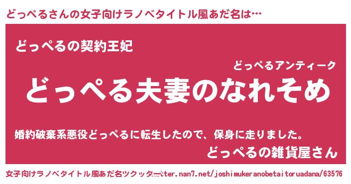 | 男性向けラノベタイトル風あだ名 | 『おまえをオタクにしてやるから、俺をどっぺるにしてくれ! 』 |
