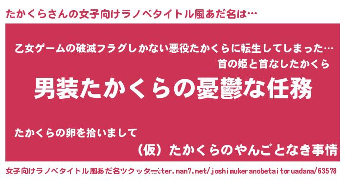 | 意味不明あだ名 | 『住所不定無職たかくら(50歳)』 |