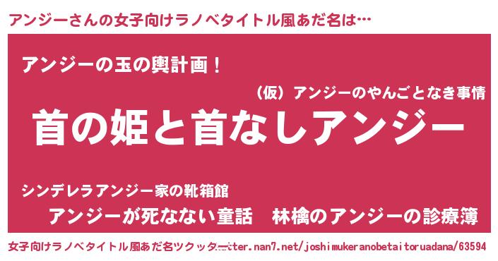 | 男性向けラノベタイトル風あだ名 | 『はたらくアンジーさま!』 |