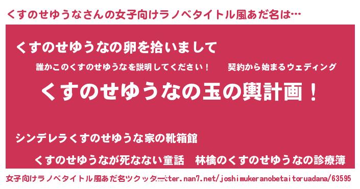 | 胡散臭い通販商品みたいなあだ名 | 『伝統あるサプリメント…その名も「くすのせゆうな」』 |