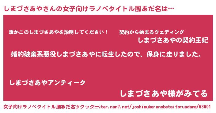 | 胡散臭い通販商品みたいなあだ名 | 『必ず成功するブレスレット…その名も「しまづさあや」』 |