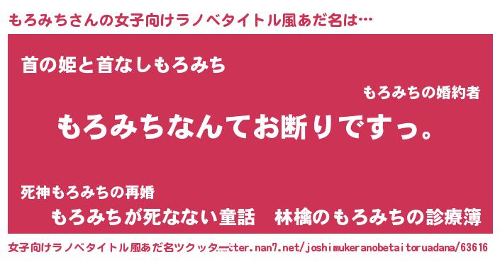 | 胡散臭い通販商品みたいなあだ名 | 『ガンによく効く冬虫夏草…その名も「もろみち」』 |