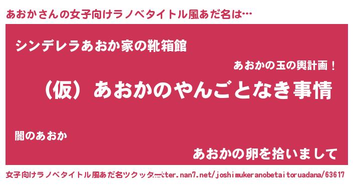| 男性向けラノベタイトル風あだ名 | 『あおかの憂鬱』『緋弾のアオカ』 |