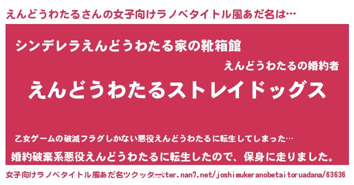 | 恥ずかしいあだ名 | 『エンドウワタルデラックス』 |