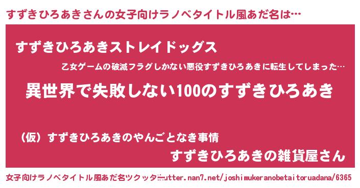 | 胡散臭い通販商品みたいなあだ名 | 『絶対に幸福をもたらす水素水…その名も「すずきひろあき」』 |