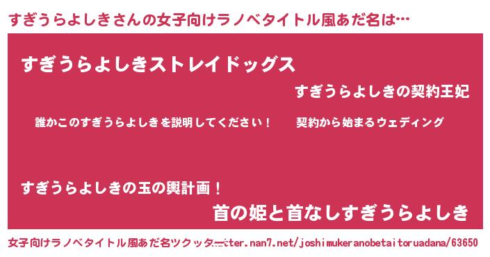 | 胡散臭い通販商品みたいなあだ名 | 『億万長者になれる霊験あらたかなお札…その名も「すぎうらよしき」』 |