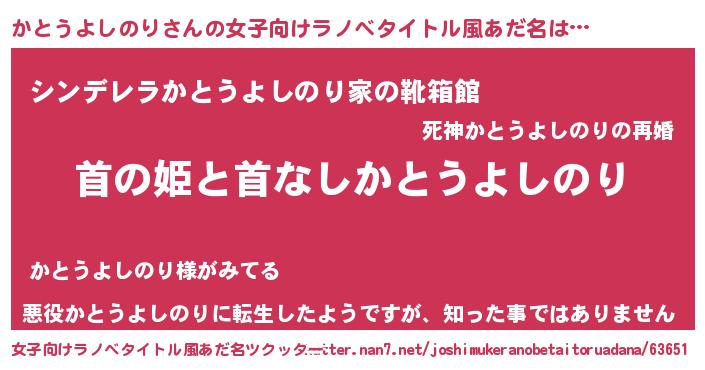 | 意味不明あだ名 | 『住所不定無職かとうよしのり(7歳)』 |