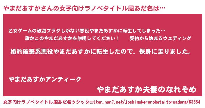 | 男性向けラノベタイトル風あだ名 | 『ヤマダアスカスレイヤー』 |
