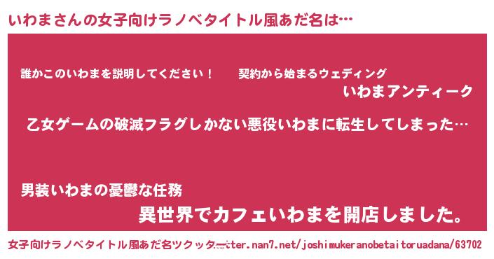 | 意味不明あだ名 | 『住所不定無職いわま(9歳)』『自称いわま』 |