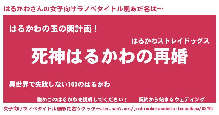| 男性向けラノベタイトル風あだ名 | 『ノーゲーム・ノーハルカワ』 |