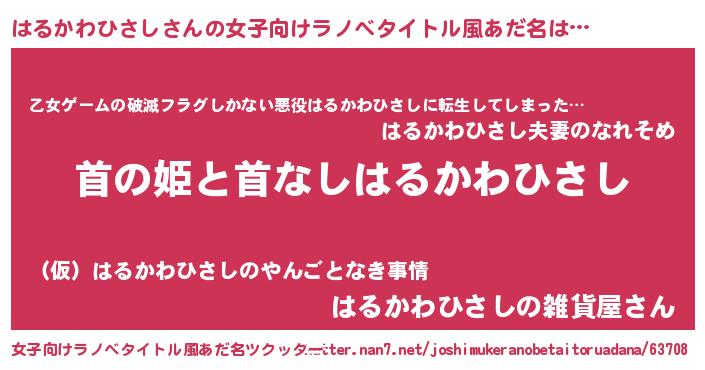 | 男性向けラノベタイトル風あだ名 | 『はたらくはるかわひさしさま!』 |
