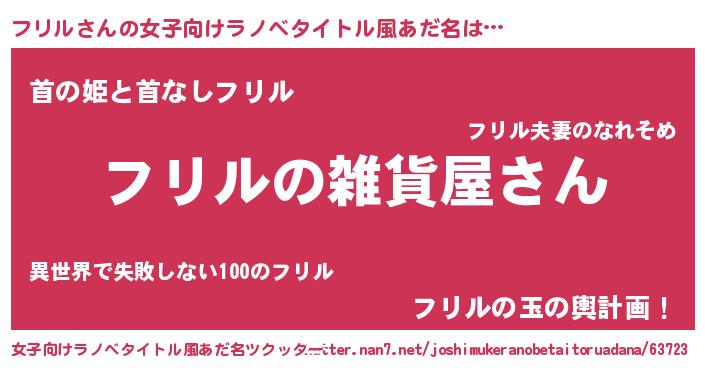 | 男性向けラノベタイトル風あだ名 | 『やはりフリルの青春ラブコメはまちがっている 』 |