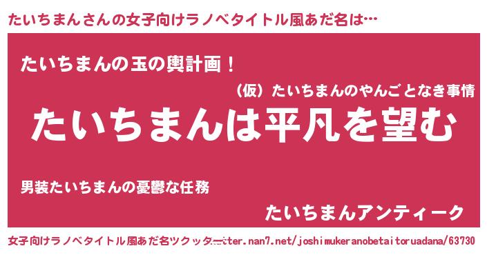 | 胡散臭い通販商品みたいなあだ名 | 『信頼と実績のペンダント…その名も「たいちまん」』 |