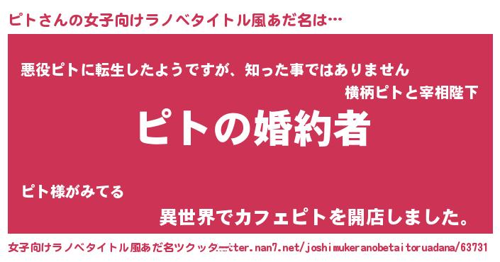 | 男性向けラノベタイトル風あだ名 | 『うちの娘の為ならば、俺はもしかしたらピトも倒せるかもしれない。』 |