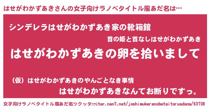 | 伝説のあだ名 | 『解き放たれた魔法使いはせがわかずあき』 |