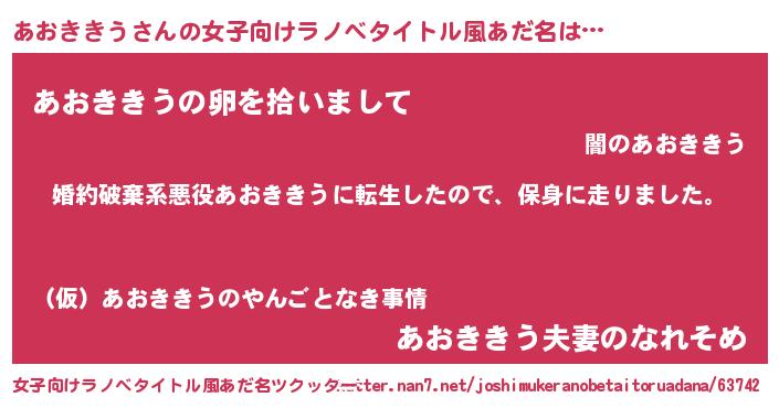 | 男性向けラノベタイトル風あだ名 | 『アオキキウスレイヤー』 |