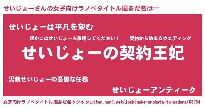 | 意味不明あだ名 | 『永久保存せいじょー』『自称せいじょー』 |