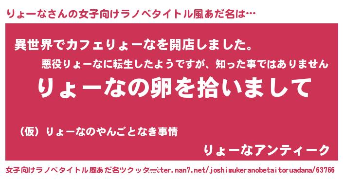 | 男性向けラノベタイトル風あだ名 | 『ダンジョンにりょーなを求めるのは間違っているだろうか』 |