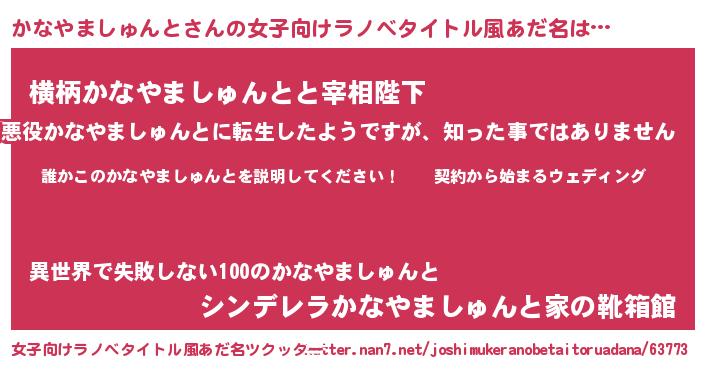 | 男性向けラノベタイトル風あだ名 | 『カナヤマシュントアートオンライン』 |