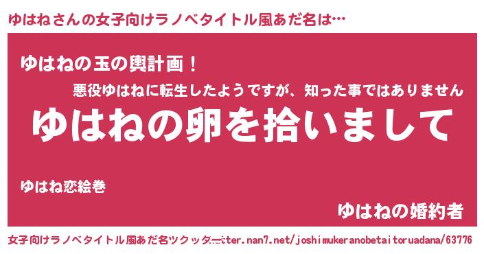 | 男性向けラノベタイトル風あだ名 | 『ゆはねの嫁は女の子じゃないと思った?』 |