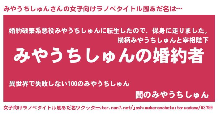 | ファンタジー風あだ名 | 『エターナルミヤウチシュンー』 |