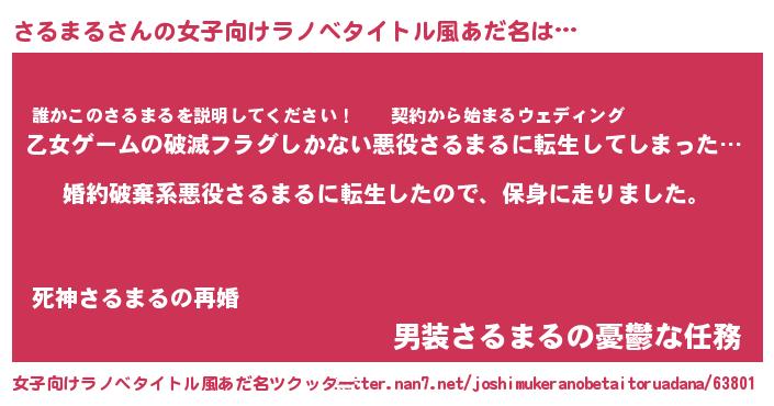 | 男性向けラノベタイトル風あだ名 | 『転生したらさるまるだった件』 |