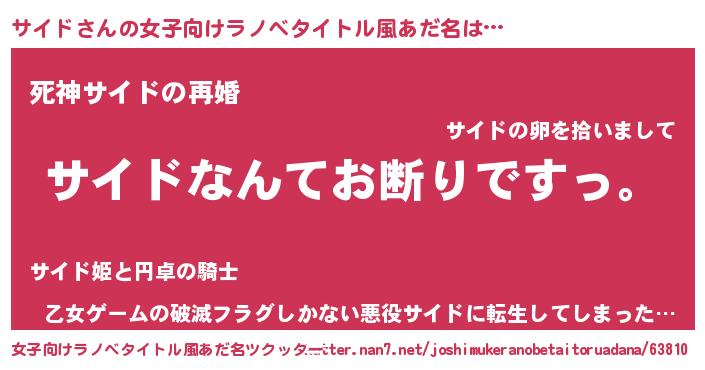 | 意味不明あだ名 | 『自称サイド』『眠気覚ましガムサイド味』 |